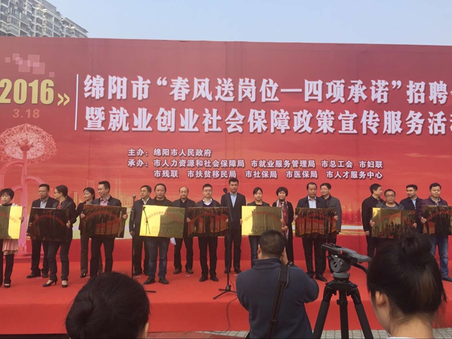 3月18日上午,江油科技孵化園受邀參加由綿陽市人民政府主辦,市人社局、扶貧移民局、總工會(huì)、婦聯(lián)、殘聯(lián)、就業(yè)局、社保局、人才服務(wù)中心等單位聯(lián)合承辦的“春風(fēng)送崗位—四項(xiàng)承諾”招聘會(huì)暨就業(yè)創(chuàng)業(yè)社會(huì)保障政策宣傳服務(wù)活動(dòng)在市人民公園文化廣場舉行。